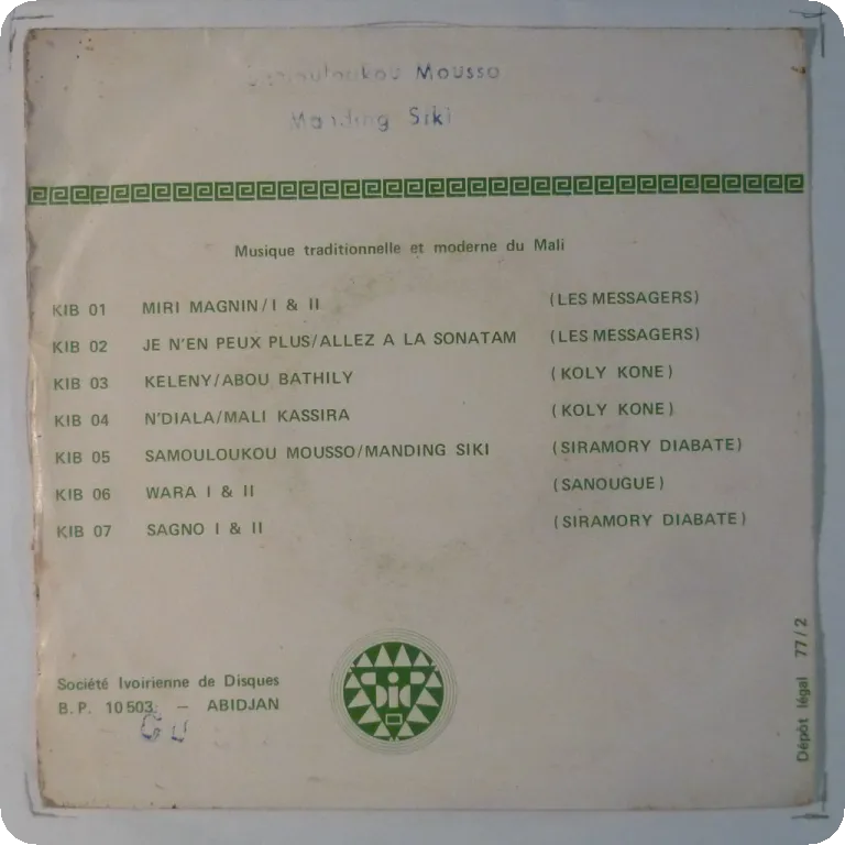 A killer pachanga & a deep & raw cha cha cha, a blues & a highlife on this scarce release by the Ivory Coast 60's icon. Never shows up ! Some wear on cover, writings on back & labels. Plays with reasonable to hardly noticeable noise, VG- to VG depending on parts, worse being opaque rpessing patche hiss on A side's edge (clip 3).