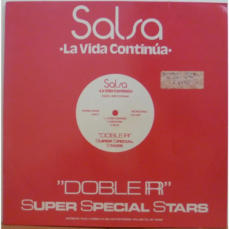 A long son montuno title tune, a salsa, a conga, and several merengues & other latin beats as recorded by the leading Curacao group. Very light wear, sticker on front & A side label, large writings on back & B side label, record plays w/ minimal light noise from thin marks. Plays nicely.