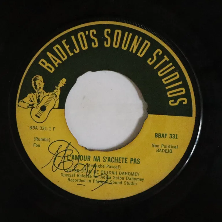 A bolero & a rumba on this ultra rare early release by the Beninese group. Writings on A label, dirt on labels, Record has marks and light to hardly noticeable noise, solid VG- to VG/VG+ depending on part.