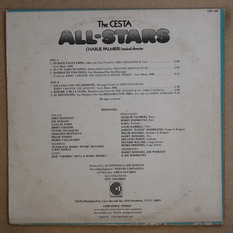 Killer latin jazz / salsa live session w/ Sabater, Cheo Feliciano, Louie Ramirez, Dioris Valladares, Yayo, Quijano. Some aging & light dirt wear, plays with light to no noise, ranges from VG+ to EX.