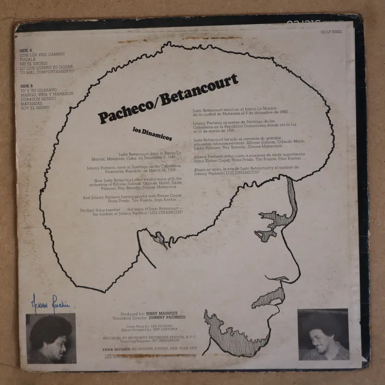 Several dancefloor tunes on this early salsa LP by the 2 giants. Mono original ! Dirt wear & aging, 5" split on top, 7" split on bottom, ringwear,creases, small writings on bottom back, record plays solid VG- to VG+ w/ marks & occasionally noticeable surface noise.