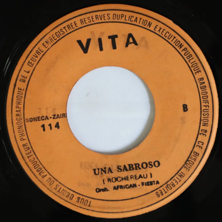 A cha cha cha & a rumba out of Congo on the collectible Vita label, likely a 70's repress. Ultra rare ! Reasonable to light constant noise noise, several clicks at the end of the rumba tune (clip 3)