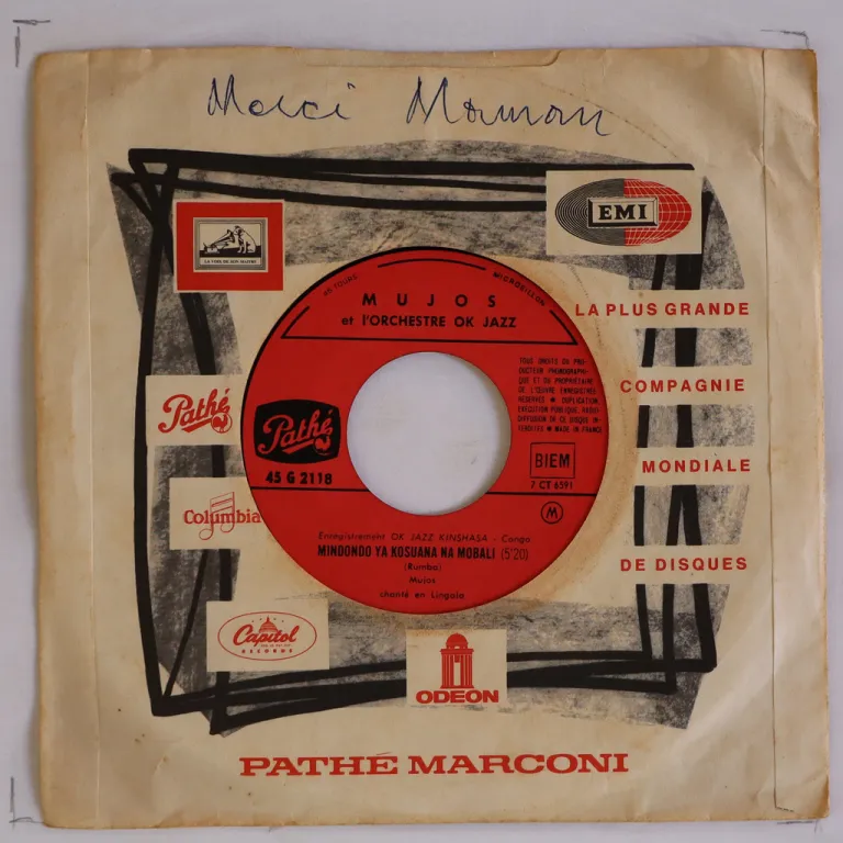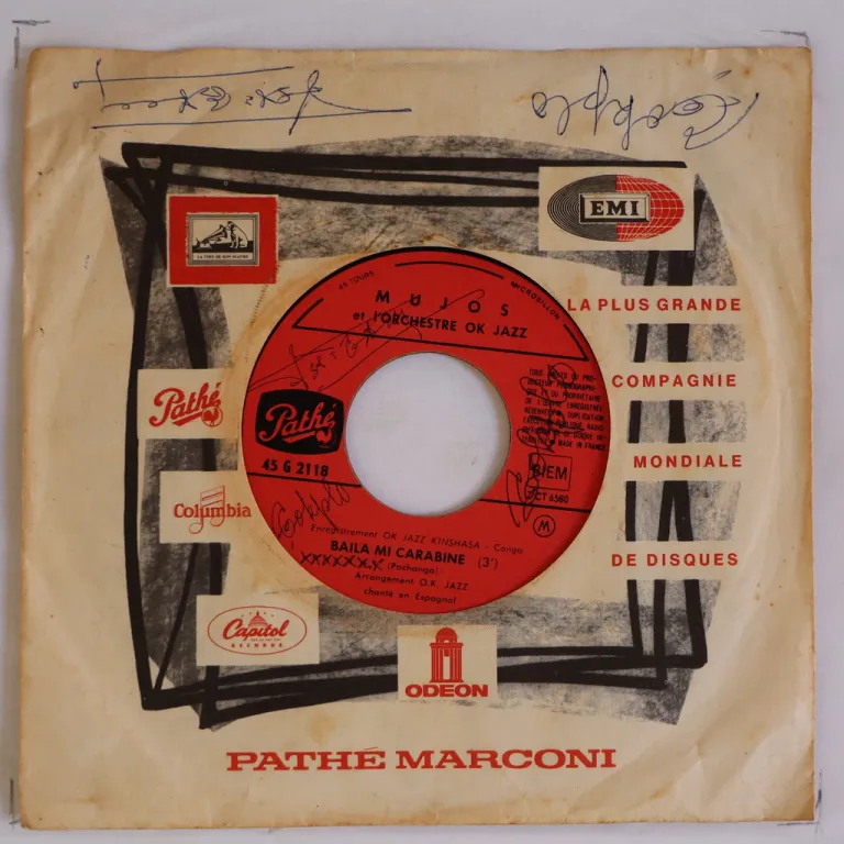 Pachanga on top as recorded by the legendary Congolese group, scarce original 7" press of a track that has also been released on Franco & OK Jazz "A Paris" LP. Sleeve w/ light aging & dirt, creases, writings on cover & A side label, record plays very nicely with very minor very occasional noise.