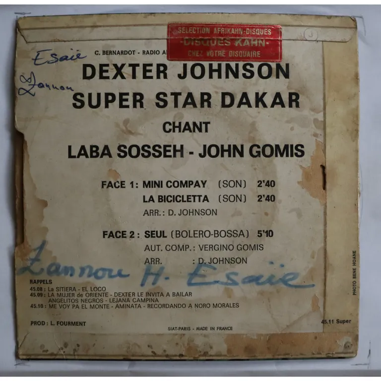 DEXTER JOHNSON & SUPER STAR DE DAKAR - Mini compay / La bicicleta / Seul