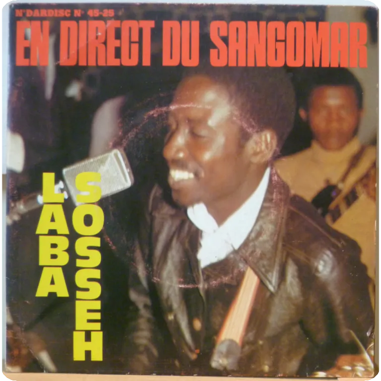 Live session recorded by the Senegambian salsero at the Thies Sangomar nightclub. Low saturated recording unfortunately. Sleeve has light age & dirt wear. Record has light occasional noise.