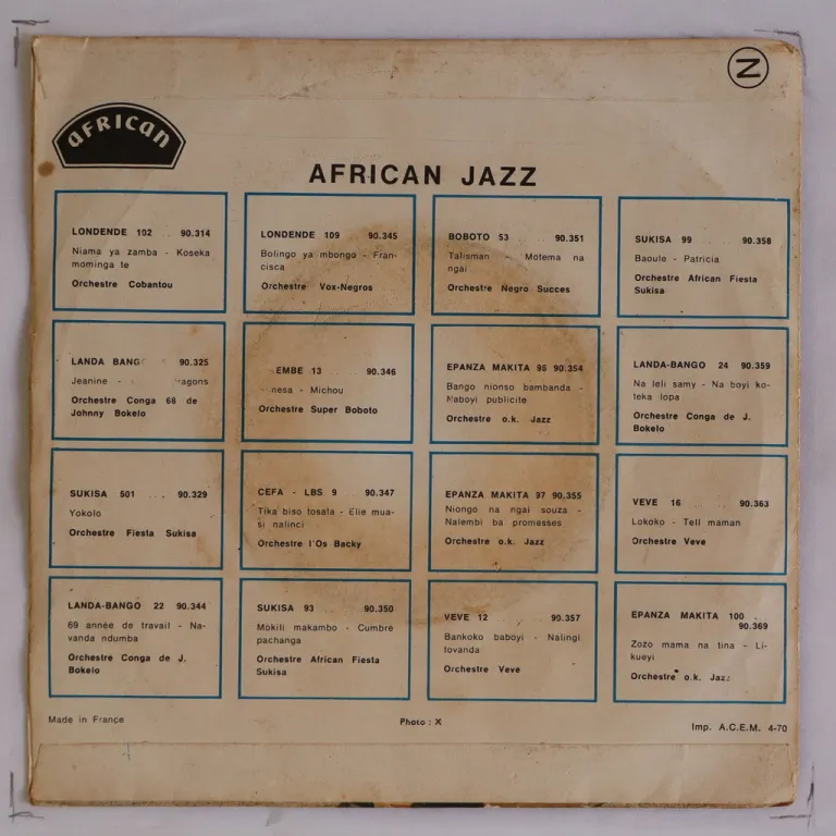 Great charanga sung in Spanish and a rumba Congolese style on this scarce release by the Congo legend, much off the radar as it's too rare to buzz. Some wear & dirt on cover, writings on front, record has marks & constant reasonable to light noise from marks.