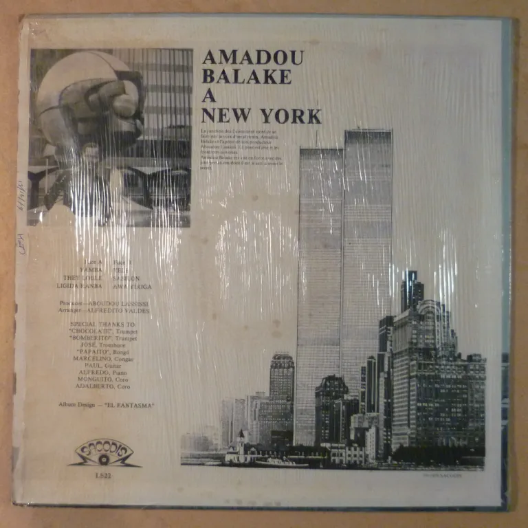 3 latin tunes on this LP recorded by the Burkinabe singer in New York. Some wear & dirt on cover though still in shrink, small writings on back & labels, record plays greatly !