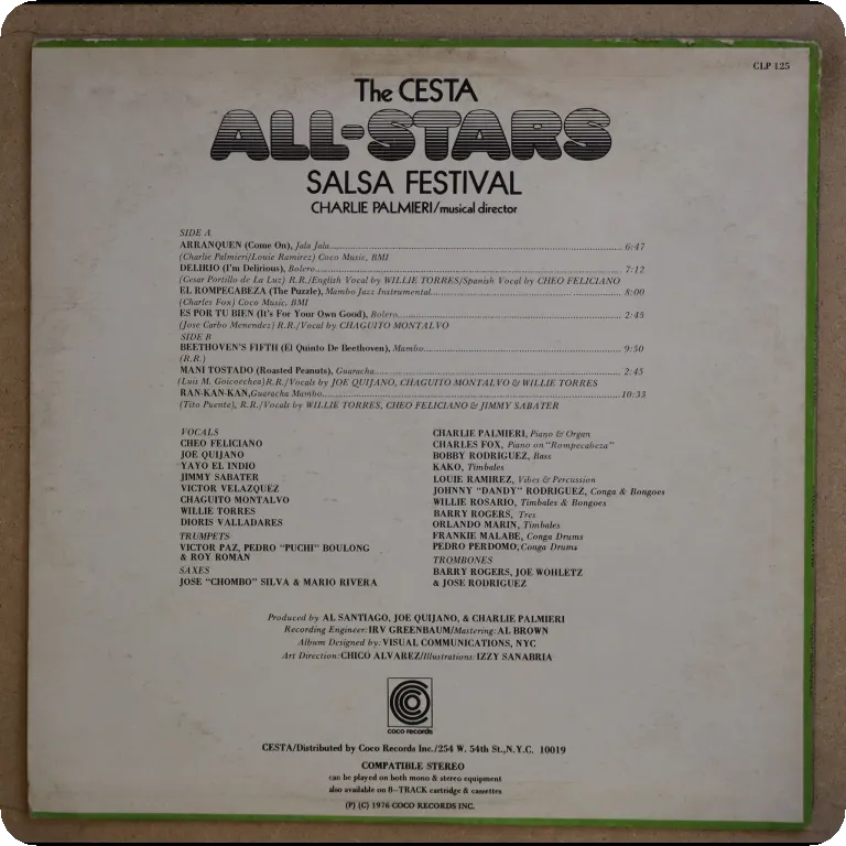 Killer latin jazz / salsa live session w/ Sabater, Cheo Feliciano, Louie Ramirez, Dioris Valladares, Yayo, Quijano. Some aging & light dirt wear, plays with light to no noise, ranges from VG+ to EX.