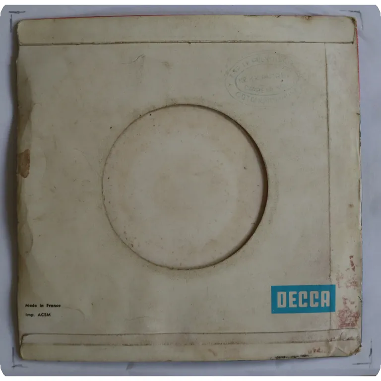 2 solid latin cuts on this single released by Bantous sax player for a small Abidjan based label. Sleeve has dirt & aging, bites on bottom corners, light brown water damage & peel off on back, record plays with strong to quite reasonable noise from numerous marks, crackier on edges the,n plays much better.