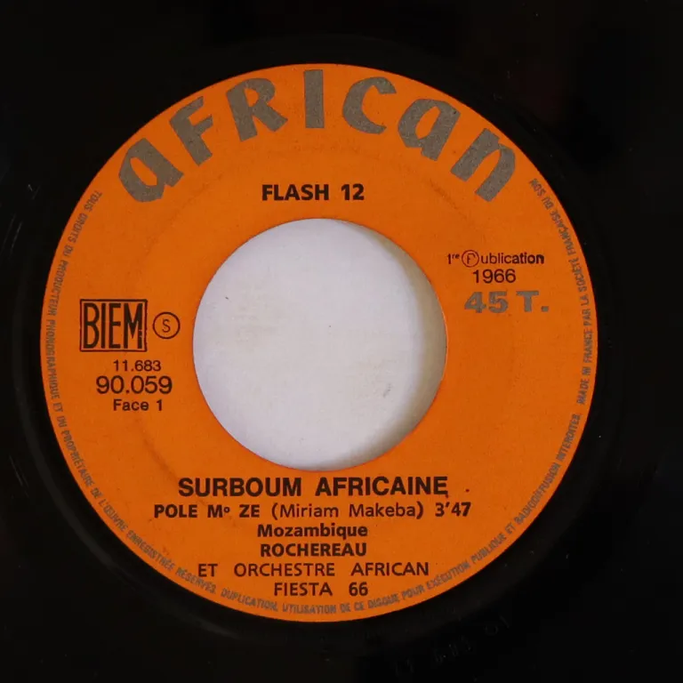 2 super funky soukous tunes also included on Rochereau's 1973 afro haircut LP. Some aging & dirt on cover, some marks & very reasonable to hardly noticeable noise, ranges from solid VG- to VG+