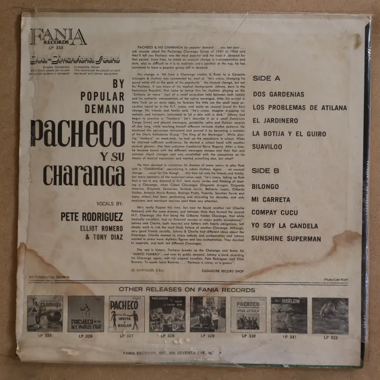 Bilongo & other winners on this classic charanga masterpiece by the flute legend. Early 70's stereo repress. Some wear, beige water amage & warp along bottom, mini writings on labels. Record in top shape