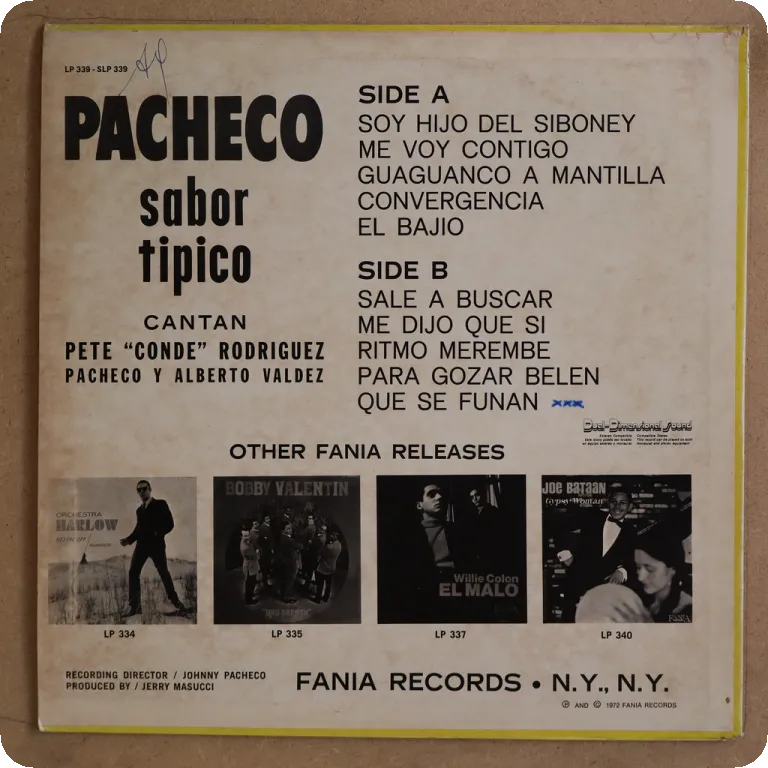 Early salsa & son masterpiece by Pacheco, surely one of his best albums, original mono gold label, Sleeve has minor wear, writings on back & light dirt, sticker on B label. Record plays sweetly most