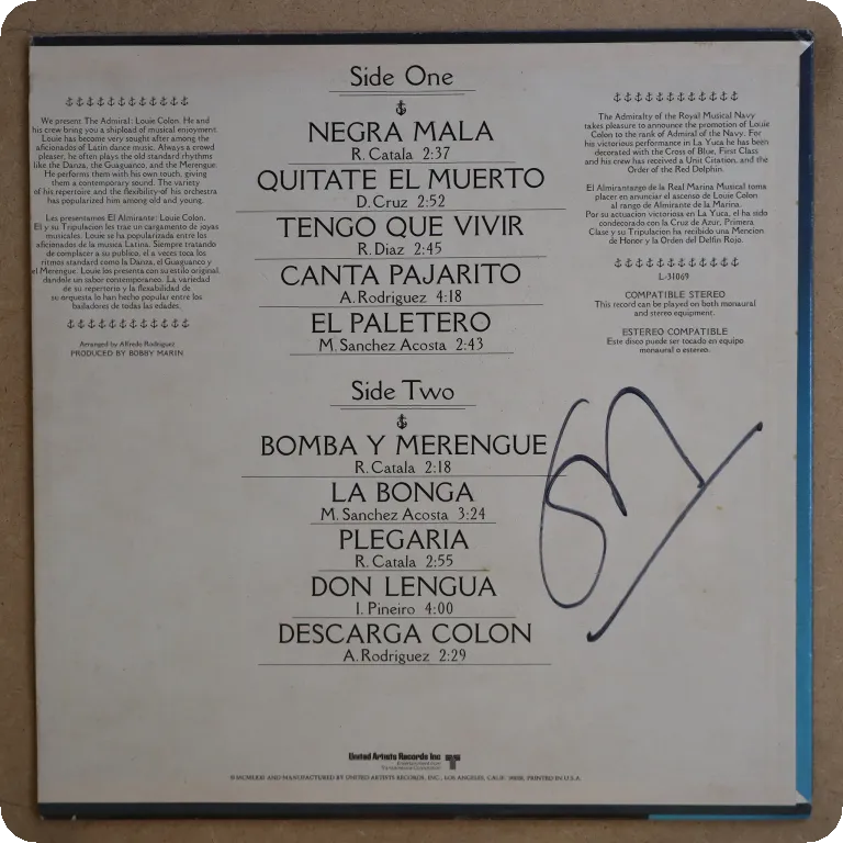 A solid descarga, a dancefloor salsa tune, otherwise contains all kinds of latin rhythms, from bomba to merengue, salsa tipica, bolero, minor wear on cover, but several small peel off on front & large