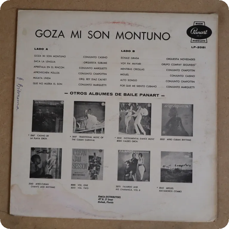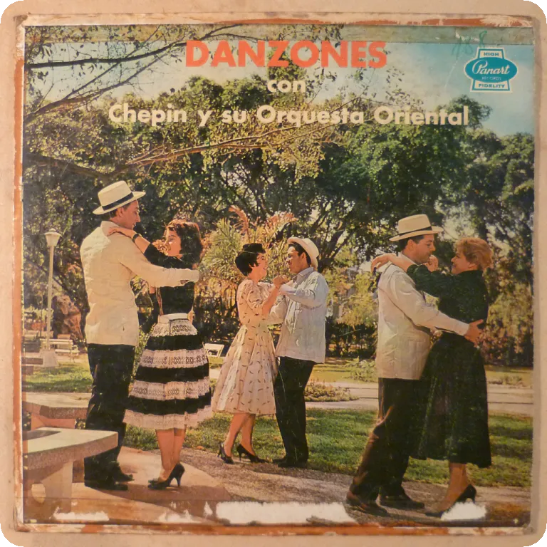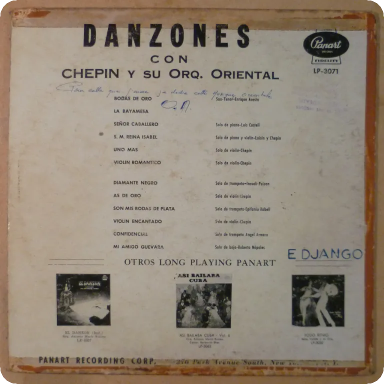 Charanga & cha chacha & many danzones as recorded by one of Cuba's major orquestas of the genre. Sleve has some aging &dirt, shop stampon back, light glue residues & blade cuts running parallel to edges & mouth. Record has light to hardly noticeable noise from marks.