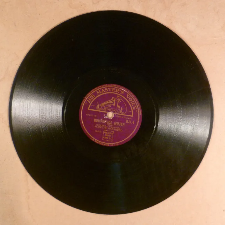 A rumba w/ mambo vibe & an instrumental bolero on this release for the collectible G.V. series. Record is V+, great shape w/ the usual backing 78rpm pressing noise & some opaque dirt or pressing wear.