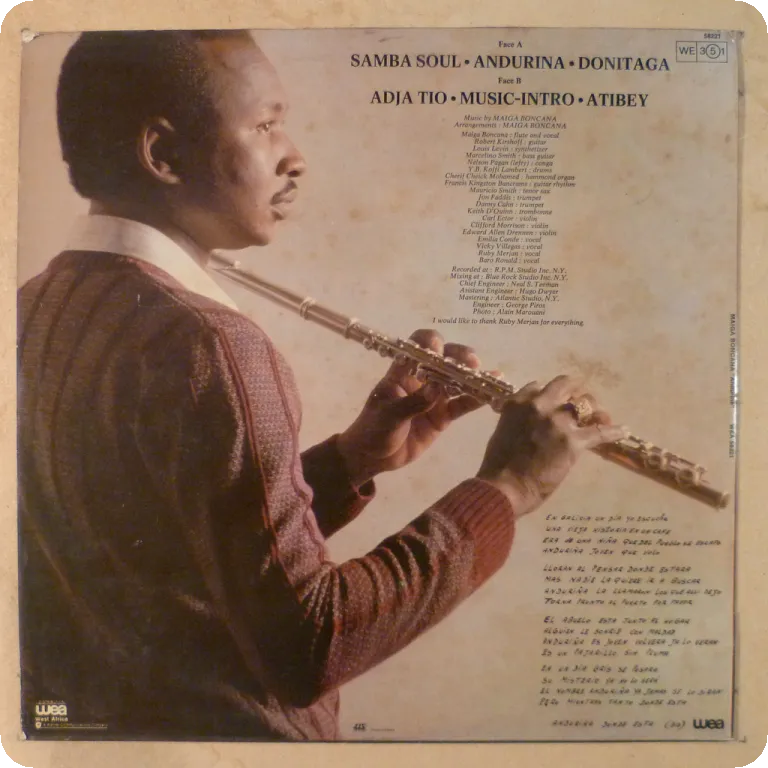 Salsa on top as recorded by the Malian maestro with a kick ass NY line up which includes Alfredo Delafe, Eddie Drennon, Alfredo Valdes, Felo Barrios, sleeve has some dirt & aging, rubber stamp on front, record plays greatly !