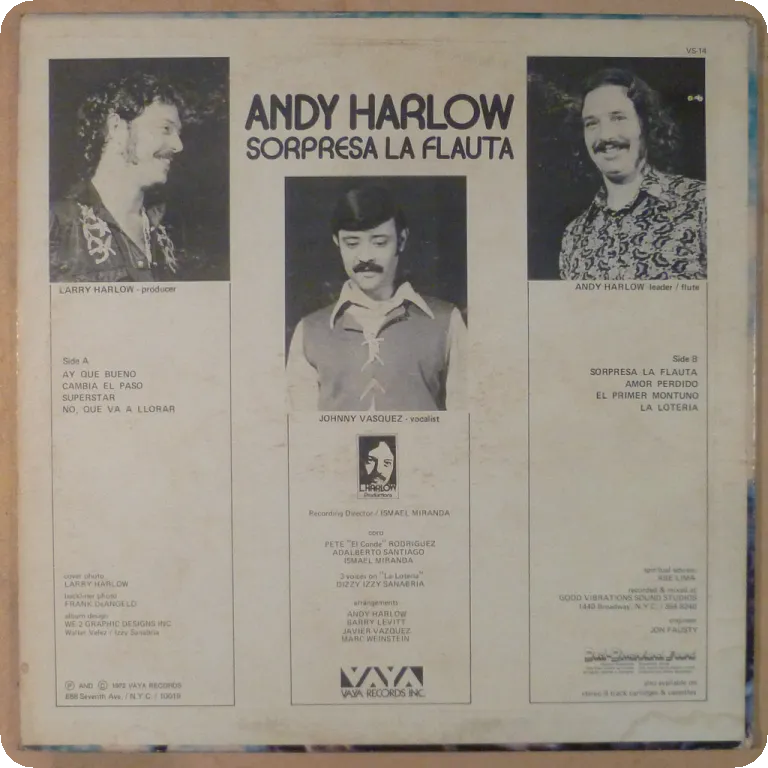 Consistent salsa LP on a tough to find label. Aging/wear, 1,5" split on top & bottom, sticker on front, writings on cover & labels, large beige dirt stain on back, record plays w/ light occasional