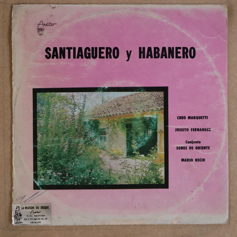 Cuban sones & other rhythms on top as released on this scarce Areito LP 011 which also includes Conjunto Sones de Oriente & Mario Reco. Produced by Ivory Coast producer from old 60's Areito material. Wear on cover, strong ringwear, split on all spine, shop sticker on front, fading of the colour, writings on cover & labels, distributor sticker on back, record has marks & light to hardly noticeable noise, solid VG to VG+
