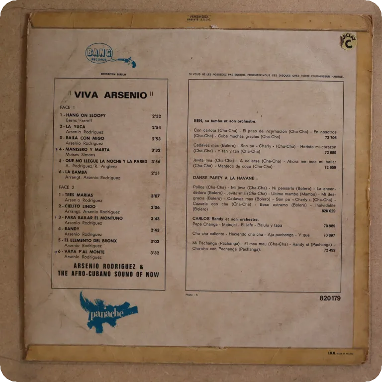 Raw sones montunos, pachanga & other latin beats by the Cuban legend. 70's issue, no deep groove, nice shape w/ writings & shop sticker on front, minor marks and only light very occasional noise.