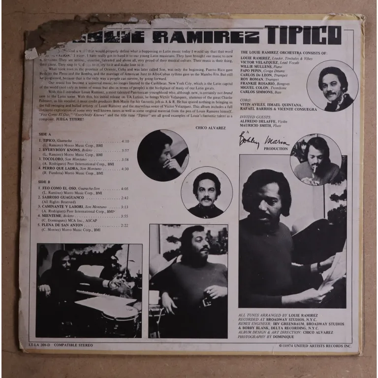 Original press of this consistent salsa LP feat. a solid guaguanco + guarachas & sones salsa style and good for the dancefloor. Sleeve has strong wear, large bite, peel off & light beige water damage wear on top mouth, bump & beige water damage along mouth, minor dirt on labels, small writings on A side label, record in top shape.