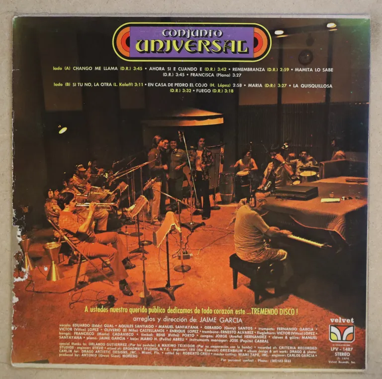 Several solid salsa tracks on this classic w/ strong santeria influence & amazing percussion work. Sleeve has light wear only but peel off along mouth, record plays nicely w/ light noticeable pressing noise inbetween tunes, top shape.