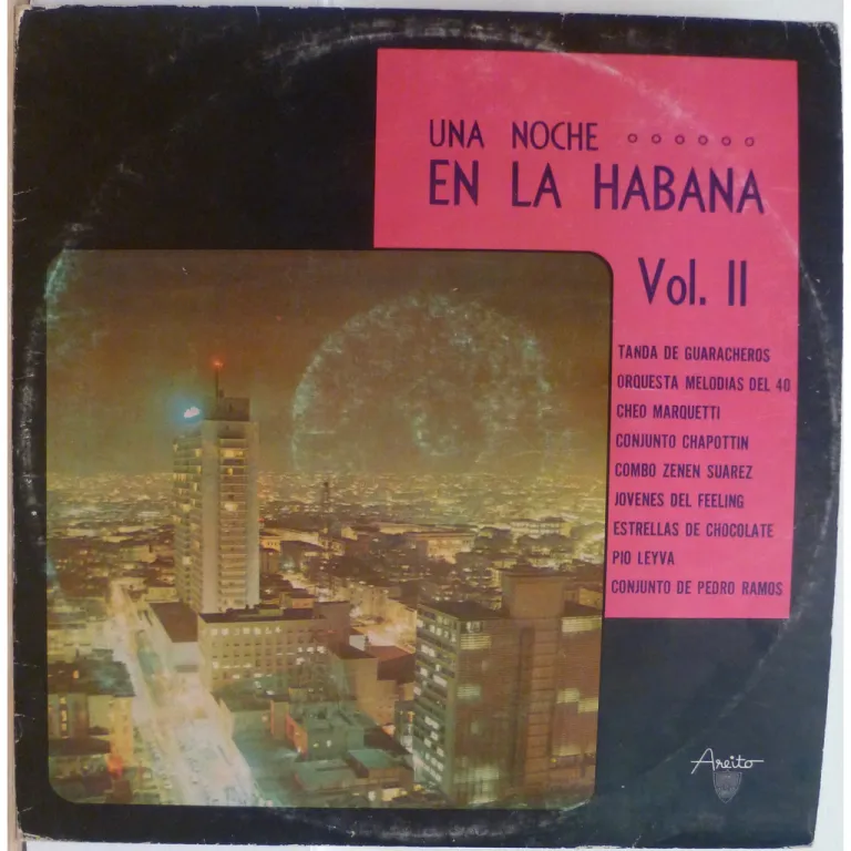 Afrocuban sones & feeling on top on this scarce compilation specially released with Areito for the African market by an Ivory Coast producer. Features possibly exclusive tracks & previously released material. Tracks are : Tanda de los guaracheros "pare cochero" "potpourri de las obras de eliseo grenet", Orquesta melodias del 40 "igualita que la habana", Cheo Marquetti "arinanara", Conjunto Chapottin "a beny more" "el guaguanco de los rumberos", COmbo sene suarez "ritmo en la habana", Jovenes del feeling "chocolate", Estrellas de chocolate "punteame el tres", Pio Leyva "vamonos pa'lla", Conjunto de Pedro Ramos "sentir guajiro" "y ahora si". Sleeve has some aging & dirt, ringwear, writings on back, record plays w/ very occasionally noticeable light noise from few marks