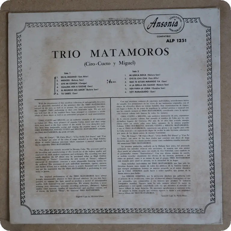 Raw sones montunos, pachanga & other latin beats by the Cuban legend. 70's issue, no deep groove, wear on cover, glue residue, small peel off & large writings on front, large writings on back, record looks quite nice but has cosntant pressing hiss, more noticeable inbetween tunes.