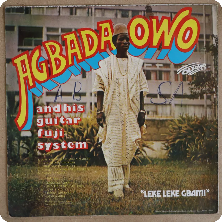Deep guitar led Nigerian fuji music rarity sung in Yoruba. Sleeve has some wear & aging, peel off on top front, pen writings on cover & labels, record plays w/ light to hardly noticeable noise from