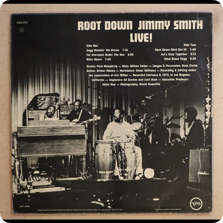 One of the organists' few indemand lp's among funkheads, live recording, features the sampled title tune, "let's stay together", "slow down sugg". Sleeve has light wear but air bubble underneath upper