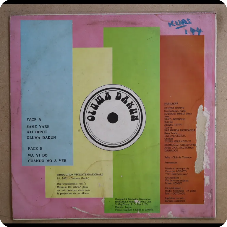 Private afro digi synth one tracker from benin w. arrangements by afrosynth genius Ernest Honny, check the afrosynth / modern soul tune w/ ill keyboard solo, light wear on front cover but peel off &