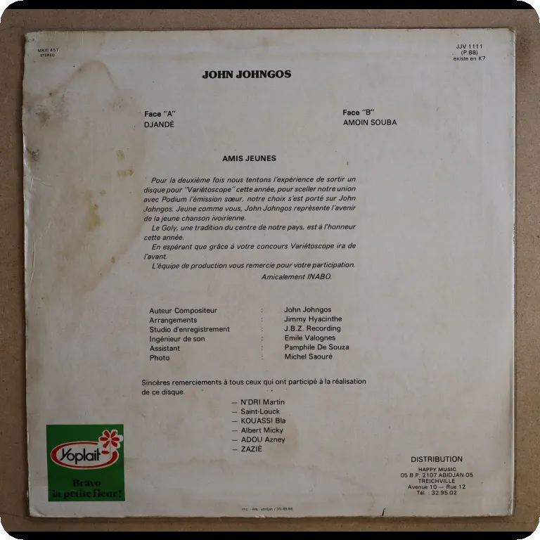 Featuring the disco funk boogie track " Yatchiminou". Sleeve has some dirt wear & aging, light ringwear on back, vinyl plays with very light to hardly noticeable noise, VG to VG+
