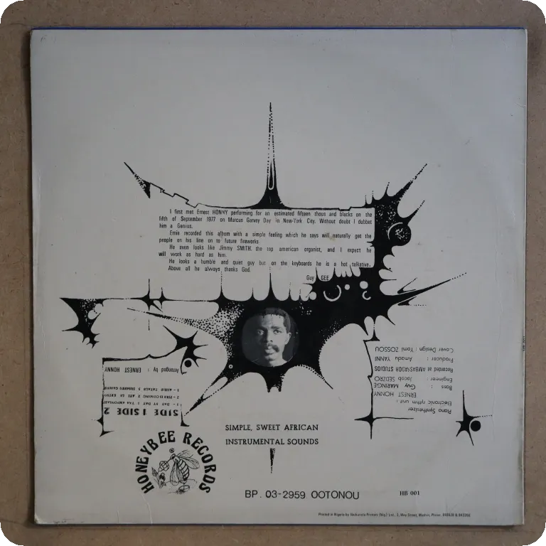 Digi highlife boogie classic released in Germany by the Ghana artist, some aging & dirt on cover, creas on bottom mouth, record has light to hardly audible opaque pressing hiss.