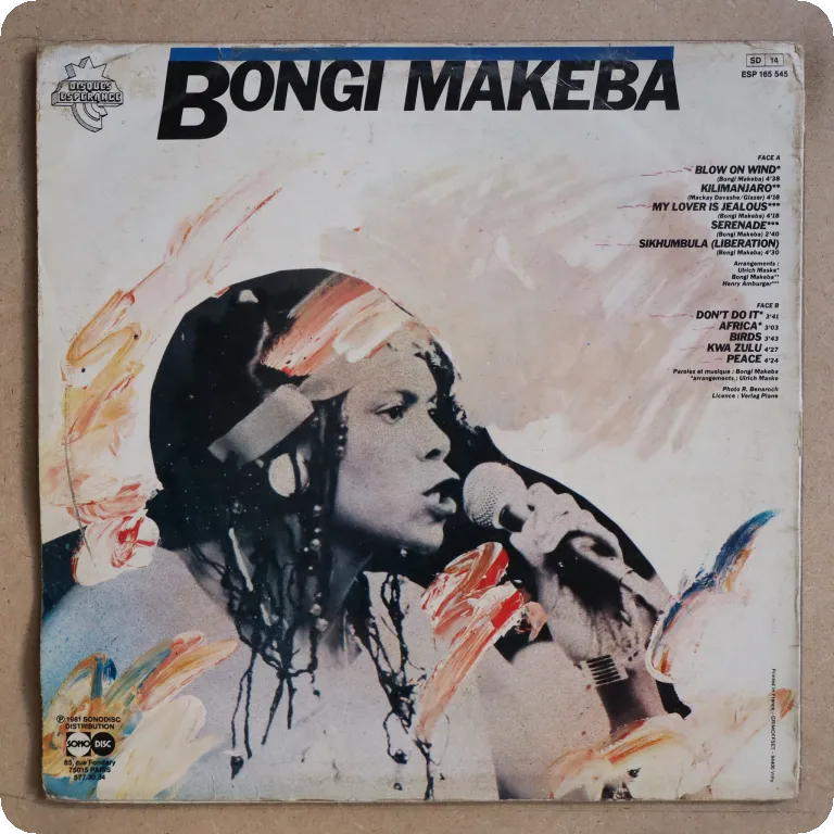 Killer afrofunk disco & breezy afro jazz fusion tunes as recorded by Myriam Makeba's daughter. Wear & aging on cover, light creases, some warp along mouth, writings on A side label. Record has