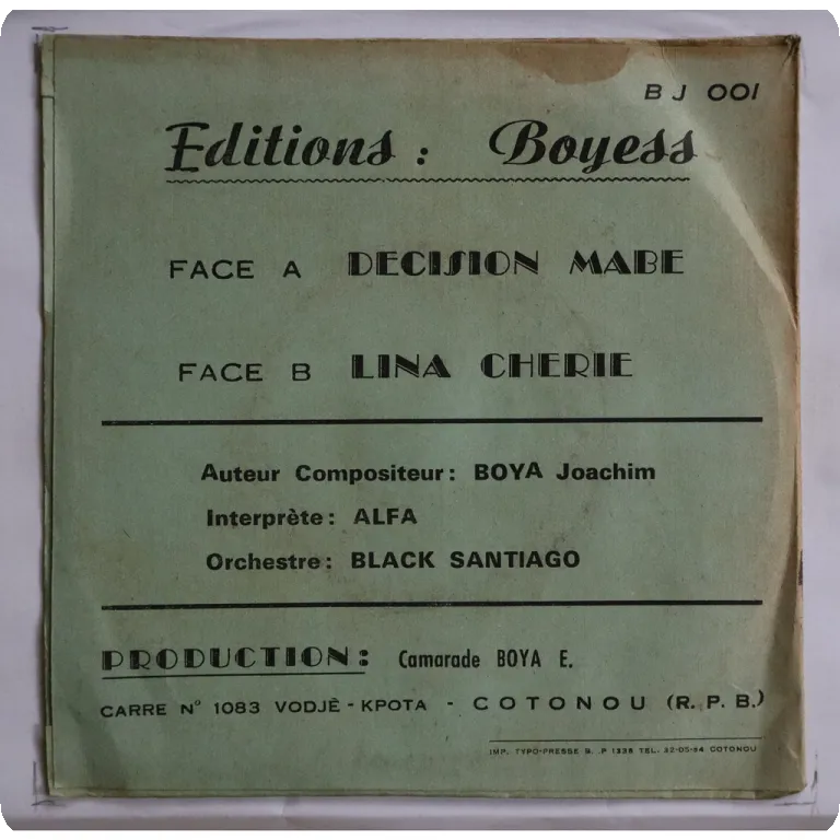 2 nice highlife tracks on this rare Beninese recording of the early 70's. Minor wear on cover, record's slightly noisy, more particularly on B side, very solid VG- to VG+