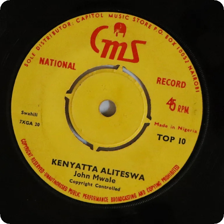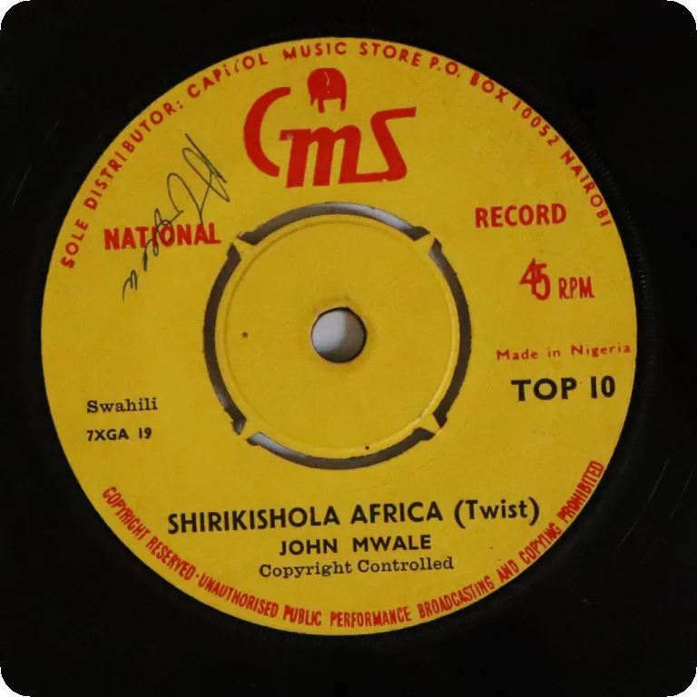 African tiwst & rumba with a swahili accent by the Kenyan musician. Writing on A side label. Plays w/ quite reasonable to light noise from numerous marks.