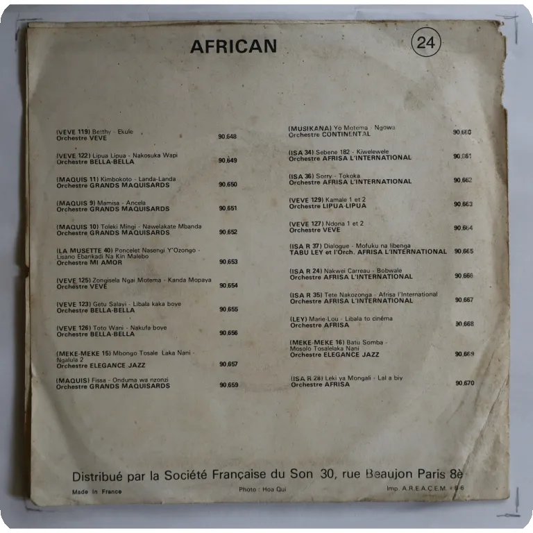 2 swinging parts 2 on this on this ultra rare early soukous release by the legendary Congolese band. Sleeve is missing. Writings & wear on labels. Record plays VG- to solid VG-/VG, reasonable to