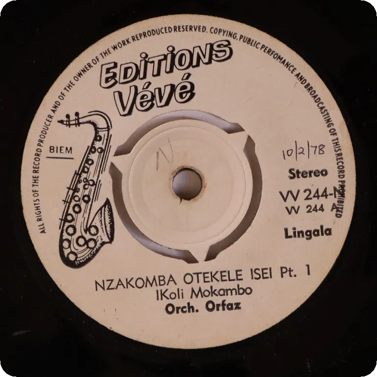 Scarce single only rumba winner by the Congo legends. Transaparent marbled press. Writings & dirt on labels, record ranges from weak VG- to solid VG+, w/ multiple loud clicks in certain parts from
