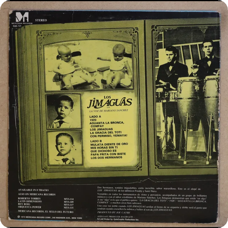 Consistent salsa LP recorded by the 2 brothers. Light wear on cover, some peel off on spine & dirt on bottom front, vinyl plays w/ light to hardly noticeable and is in great shape, ranges from VG to