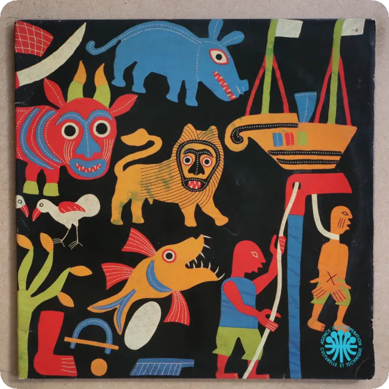 Astonishing Beninese afro funk & afropop double lp edited by the French Cooperation Agency, features tracks by Poly Rythmo, Messagers du Benin, Danialou Sagbohan, etc. Sleeve has dirt & aging