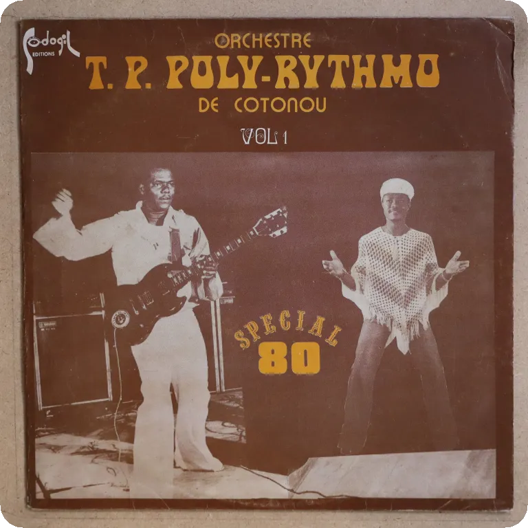 Astonishing Beninese afro funk & afropop double lp edited by the French Cooperation Agency, features tracks by Poly Rythmo, Messagers du Benin, Danialou Sagbohan, etc. Sleeve has dirt & aging