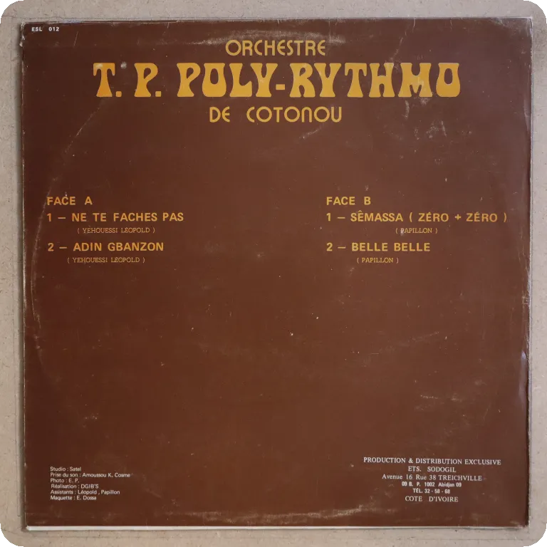 Heavy hybrid disco / funk track at "Moulon devia" and the heaviest danceable afro latin tunes I heard by the Poly Rythmo. 2 killer tunes on side B, "Le silence n'est pas un oubli" & "Yao yao". Sleeve