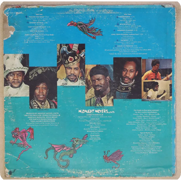 Several boogie disco / funk tracks on this Trinidad island funk release, aging on cover, writings on labels, light grey water damage stains & minor warp on bottom back Record has numerous surface