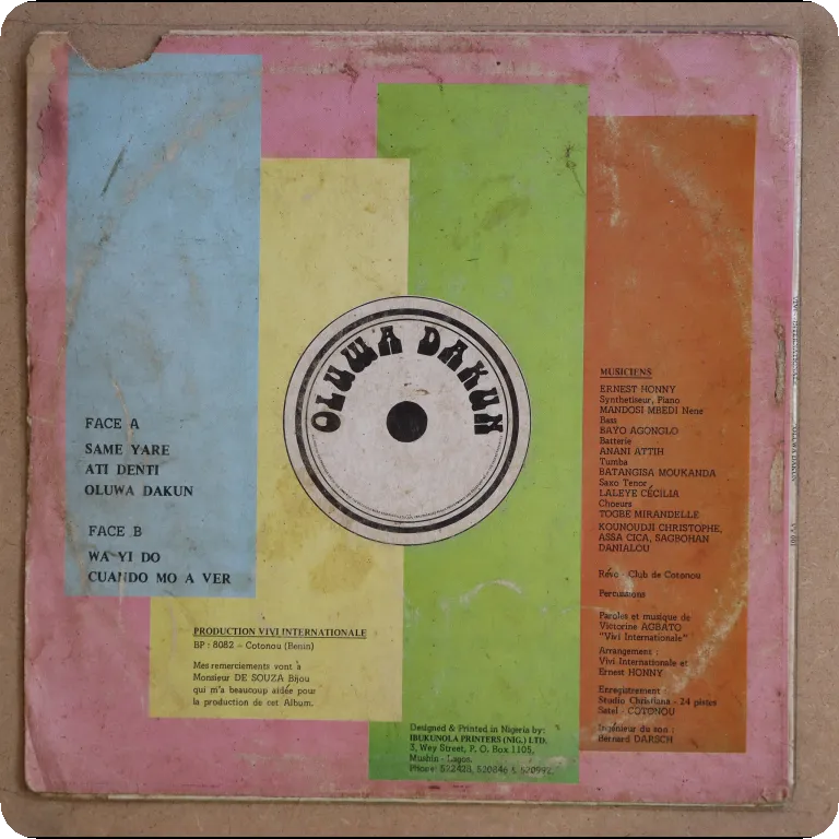 Private afro digi synth one tracker from benin w. arrangements by afrosynth genius Ernest Honny, check the afrosynth / modern soul tune w/ ill keyboard solo, light wear on cover but on top seam, dirt