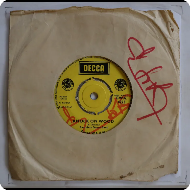 Deep bluesy soul & highlife on top as recorded by Ghana's most sucessful 60's band and relased on thEIR Hit sound LP. Sleeve has aging & dirt, bite on bottom, creases, writings on back & labels