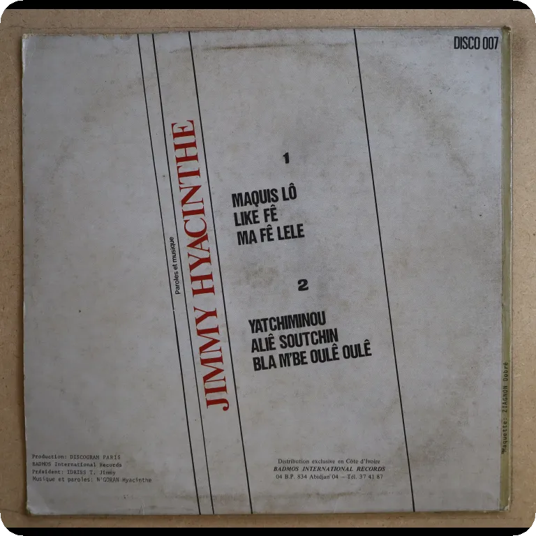 Featuring the disco funk boogie track " Yatchiminou". Sleeve has some dirt wear & aging, light ringwear on back, vinyl plays with very light to hardly noticeable noise, VG to VG+