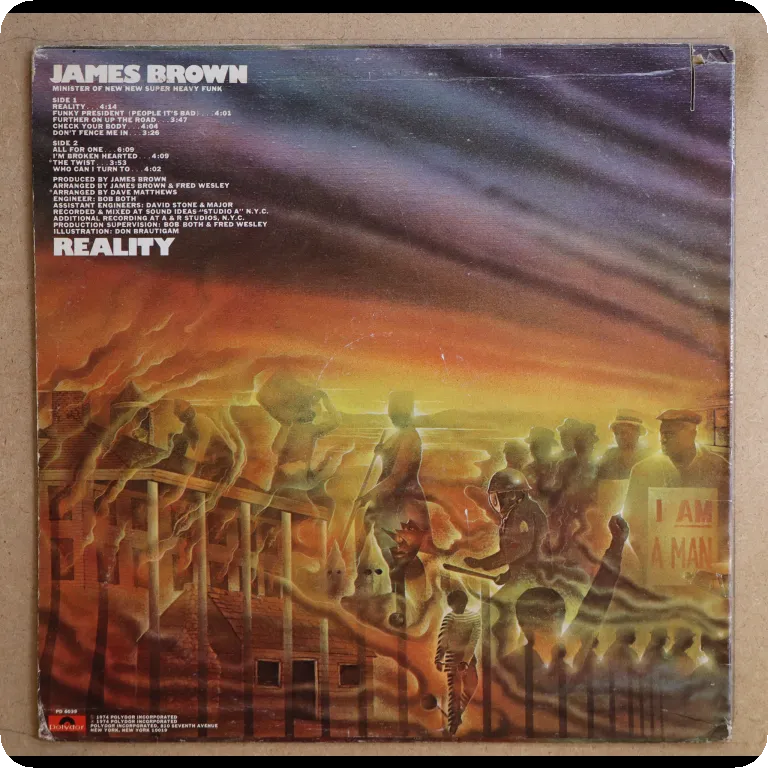 All times classic funk feat. title tunes, alternate recordings of "give it up or turnit a loose", "it's a man's man's world"….Minor wear on cover, writings on labels, record plays w/ constant noise