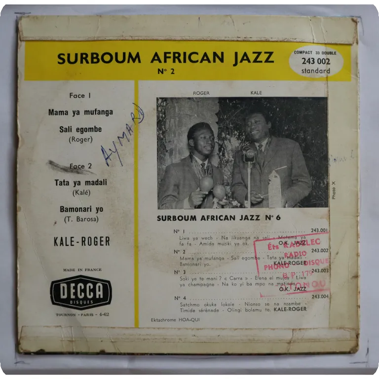 Boogie disco winner on this single record in Paris by West African artist, likely from Senegal. Sleeve has some dirt & aging, writings & rubber stamp, writings & dirt on labels. Constant reasonable to light noise from numerous marks.
