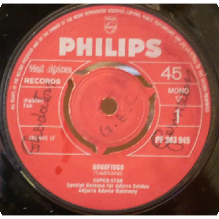 A deep afro folk / hypnotic sato style tune on this scarce release by the Beninese group, noisy on intrto from marks for about 30 seconds, otherwise just very light noise. Writings on labels.