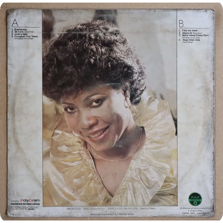 Boogie disco winner & modern soul tunes on this LP by the Nigerian lady singer. Light aging, strong dirt on back, several mini peel off on top front, writings on labels. Record has marks & constant