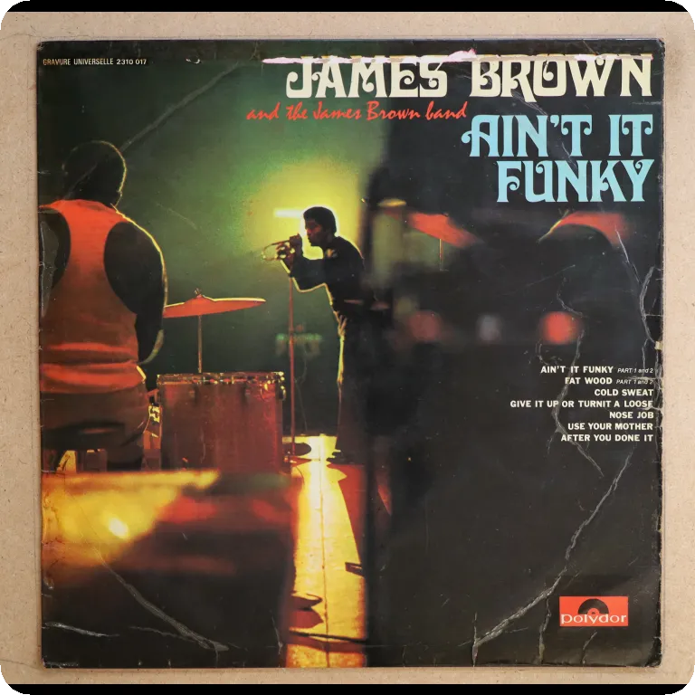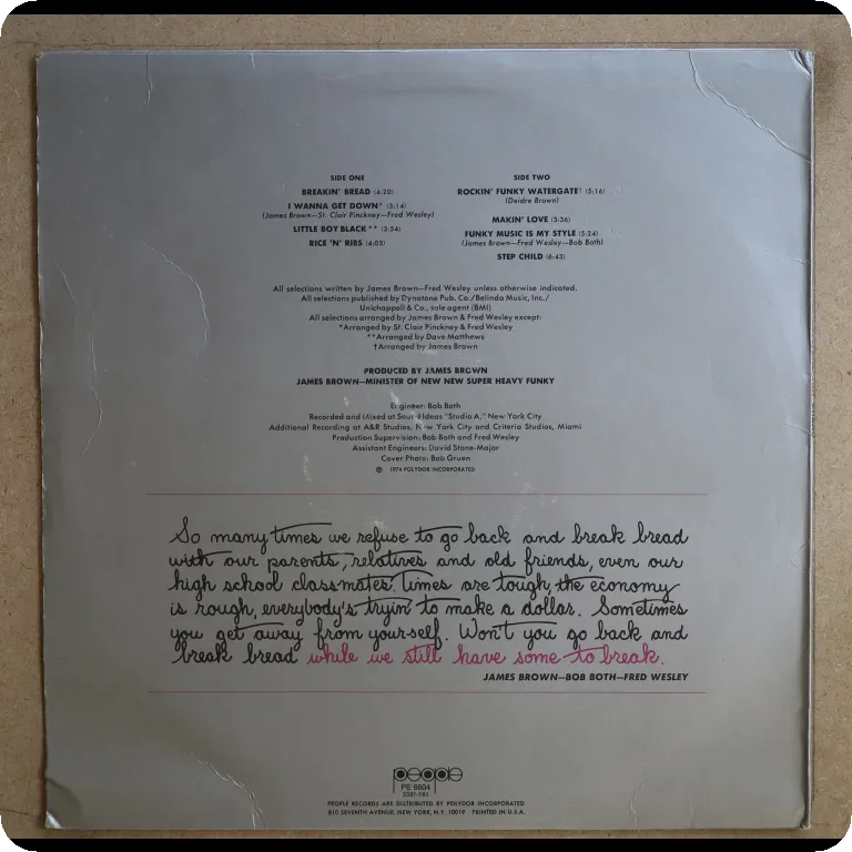 All times funk classic by the godafather on original press. Polydor label with JB's head. Some wear on cover, peel off on spine, writings inside gatefold, record plays w/very reasonable to hardly